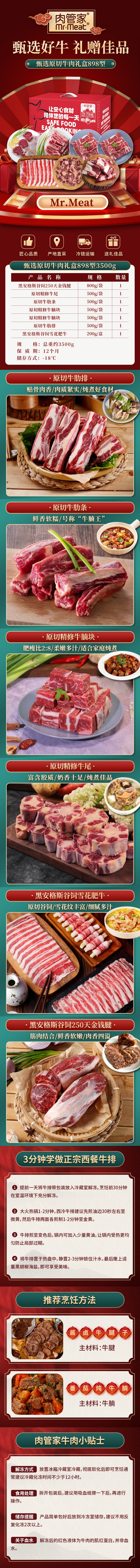 肉管家Mr.Meat 甄选原切牛肉礼盒898型 3500g