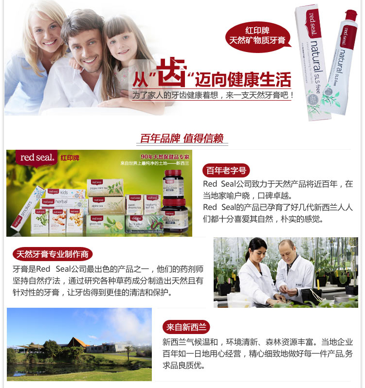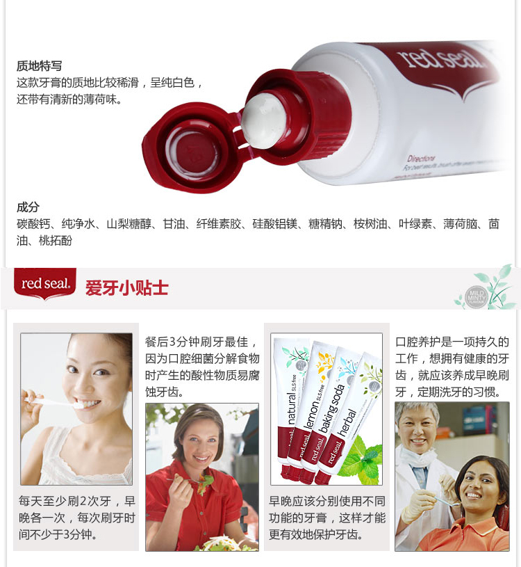 【精品推荐】新西兰Red Seal红印柠檬味清新口气牙膏100g