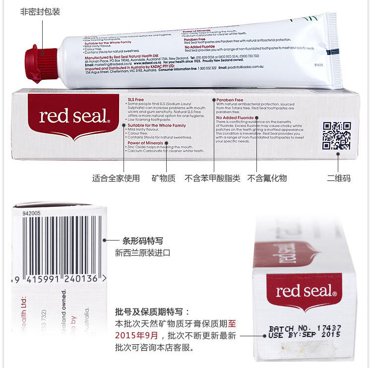 新西兰Red Seal Propolis红印蜂胶牙膏 新旧包装随机发货