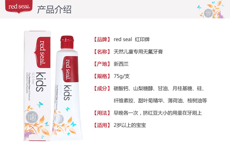 新西兰Red Seal红印天然草本和矿物质无氟牙膏110g