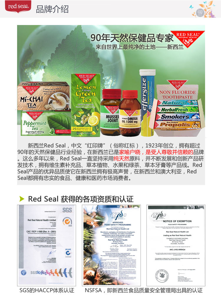 新西兰红印Redseal草本牙膏 100g