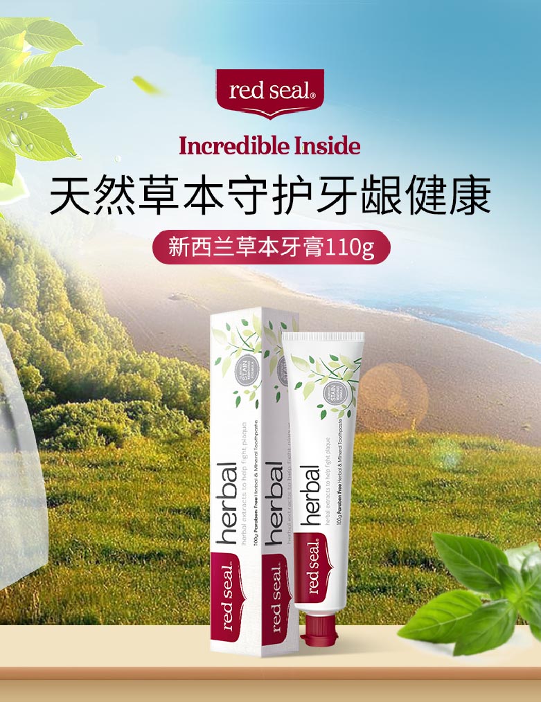 新西兰Red Seal红印天然草本和矿物质无氟牙膏110g