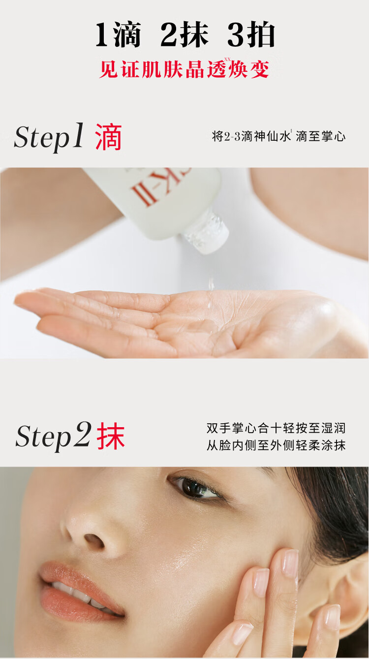 SK-II神仙水,含有PITERA酵素精华,帮助肌肤打好底子,从而充分吸收其他保养品。