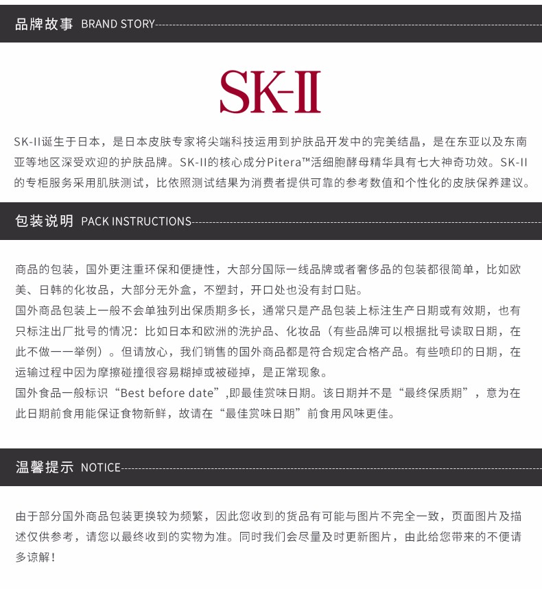 SK-II是1975年在日本创立的护肤品牌,是日本皮肤专家将尖端科技运用到护肤品开发中的完美结晶,是在东亚以及东南亚等地区深受欢迎的护肤品牌。