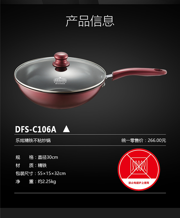 【新品】德铂debo 24CM欧岱拉无涂层炒锅炒菜锅 无涂层 精巧加深