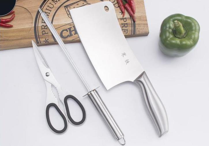 邝一刀手工锻打菜刀 家用厨房刀 复古4件套刀组合 切片刀厨师专用 4铬钢材质 斩骨刀切片刀 厨师刀 剪刀 菜刀精美礼盒