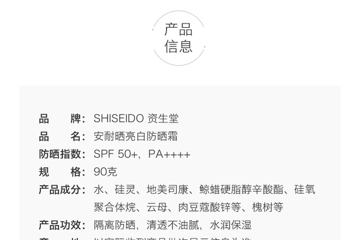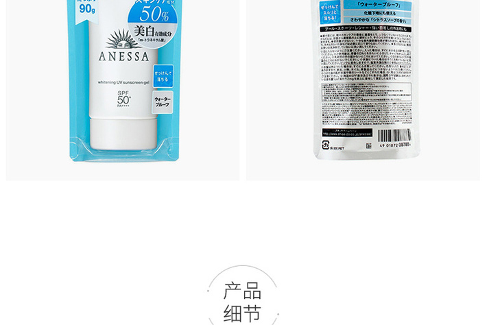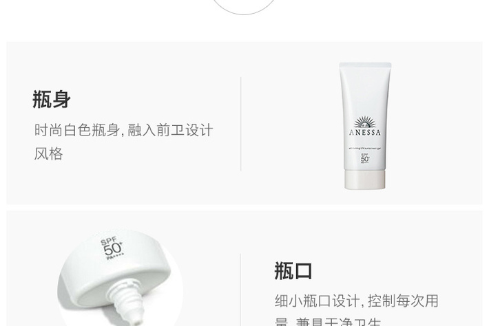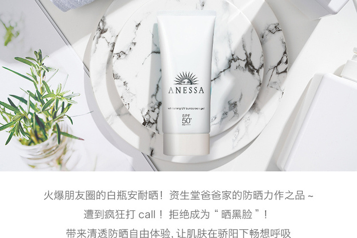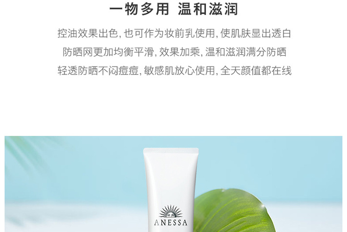2022年新版 Shiseido/资生堂 安耐晒 面部防晒啫喱白管(脸部专用)90g