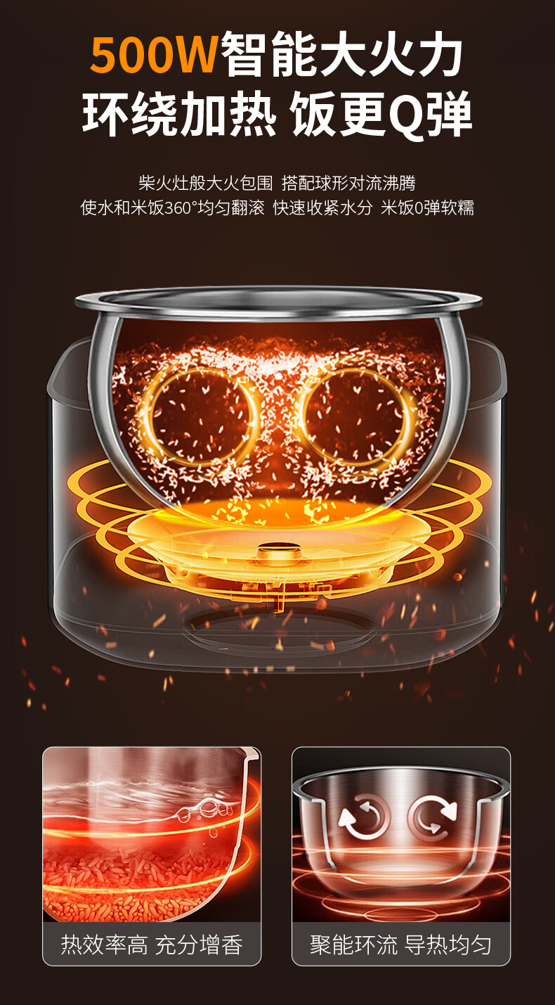 苏泊尔(SUPOR)ZMD安心系列 家用4L升多功能球釜内胆预约柴火饭智能电饭煲SF40HC66