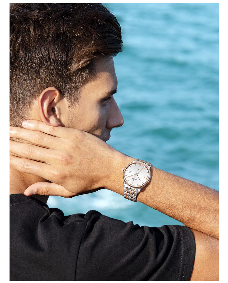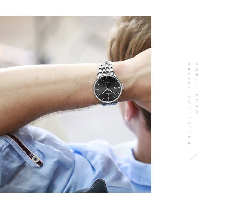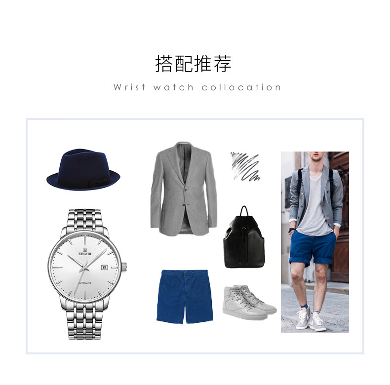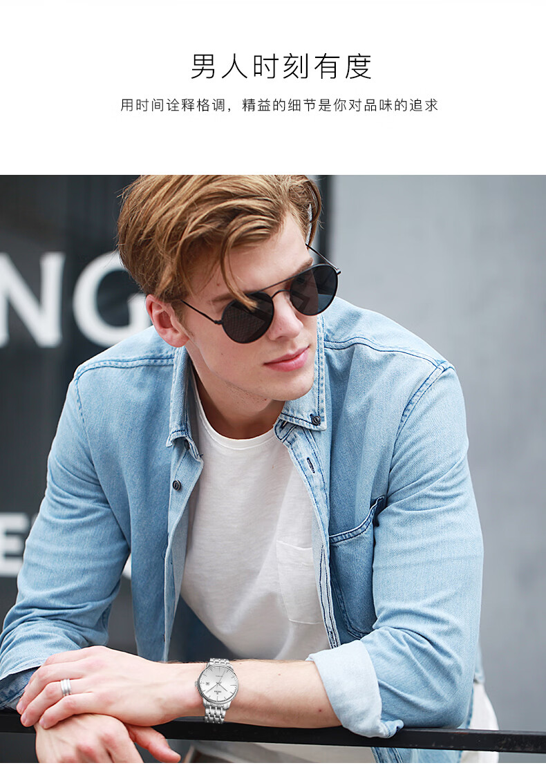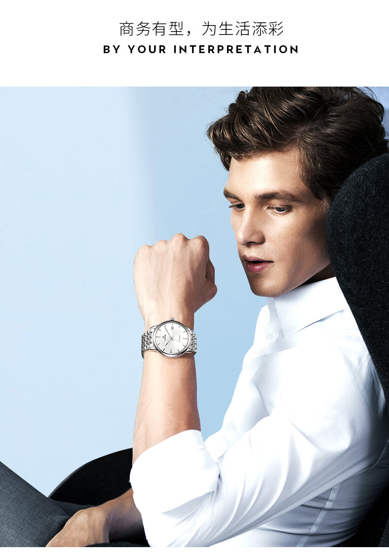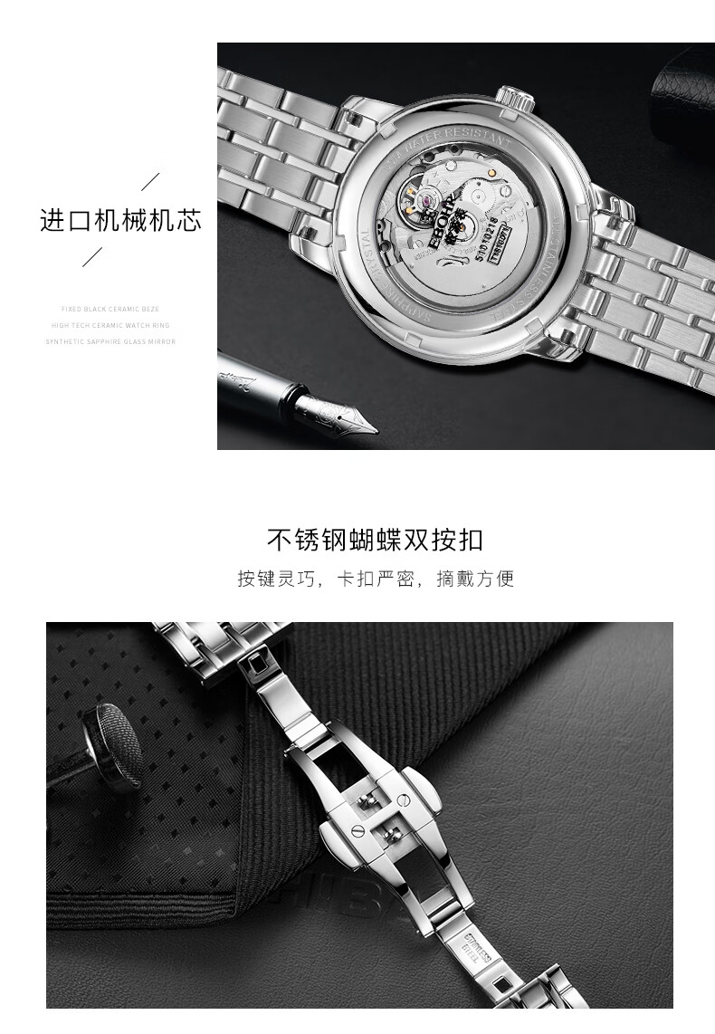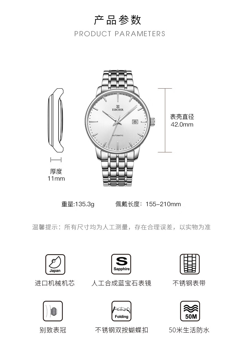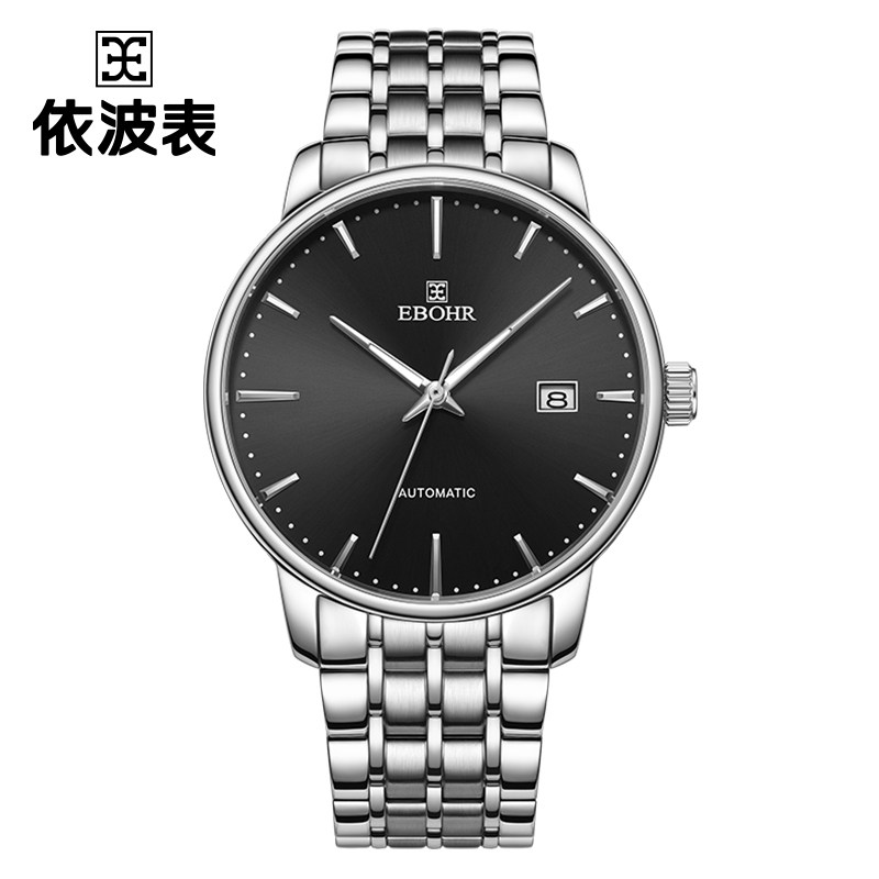 依波(EBOHR)自动机械手表 男表双日历镂空 钨钢表带 送男友生日礼物