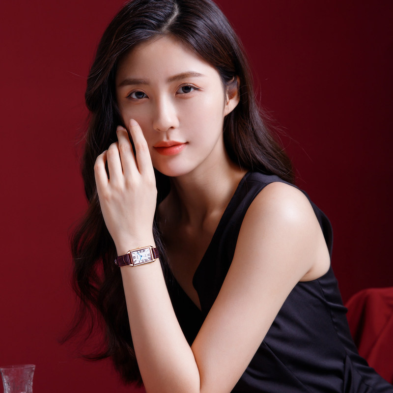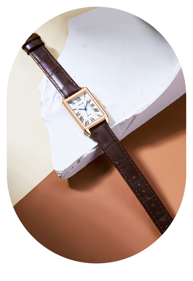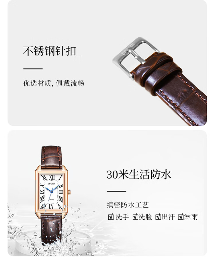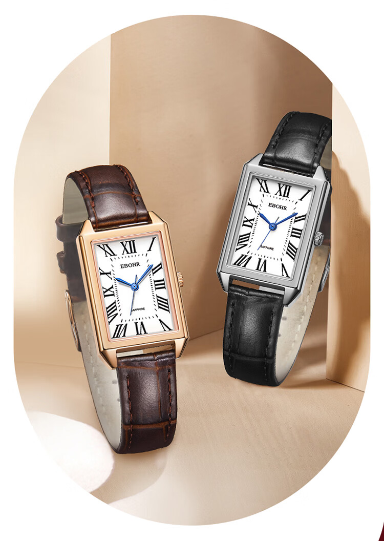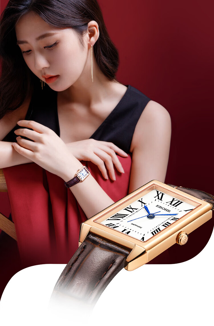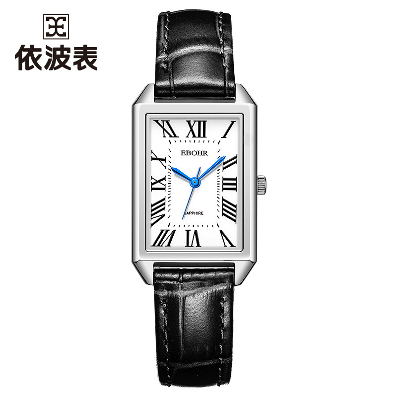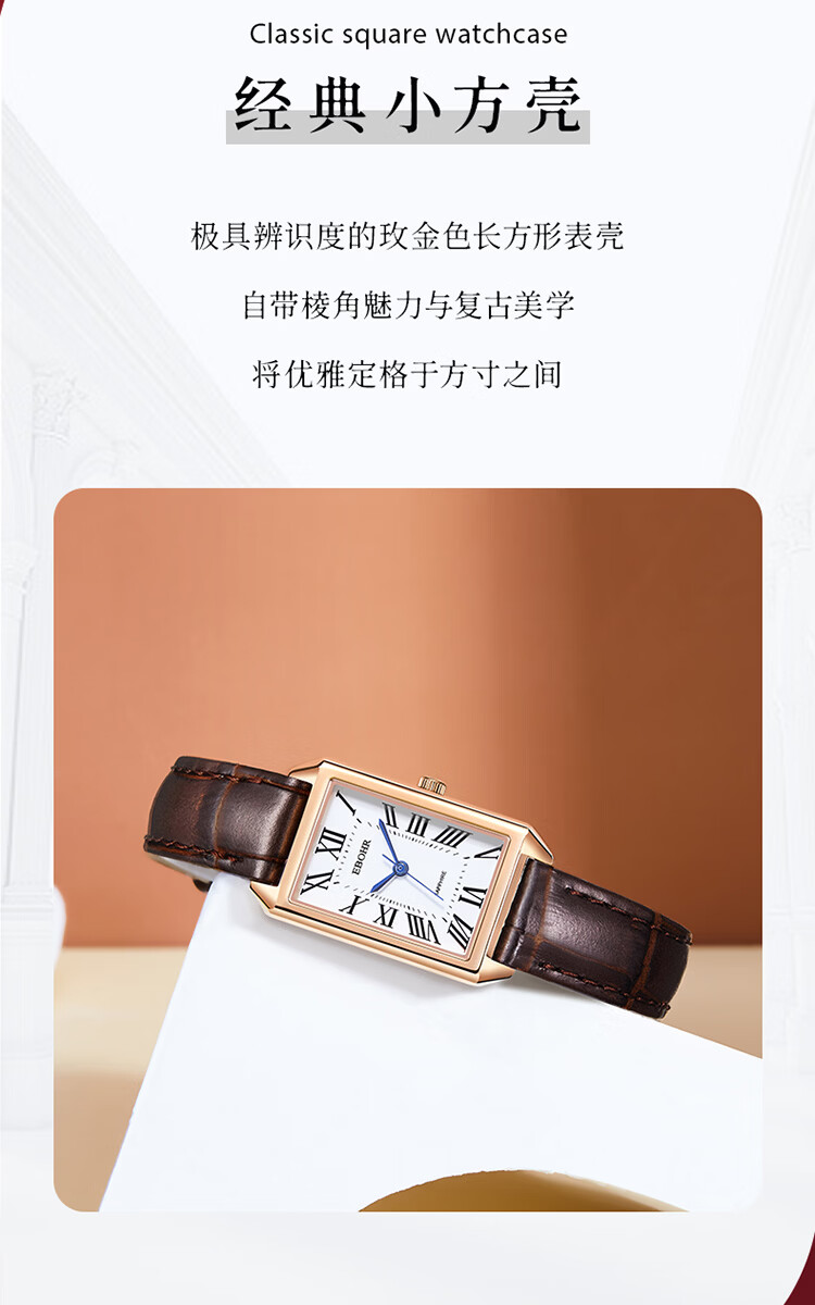 依波(EBOHR)大师系列 女士石英表 复古优雅方盘皮带防水手表送女友礼物