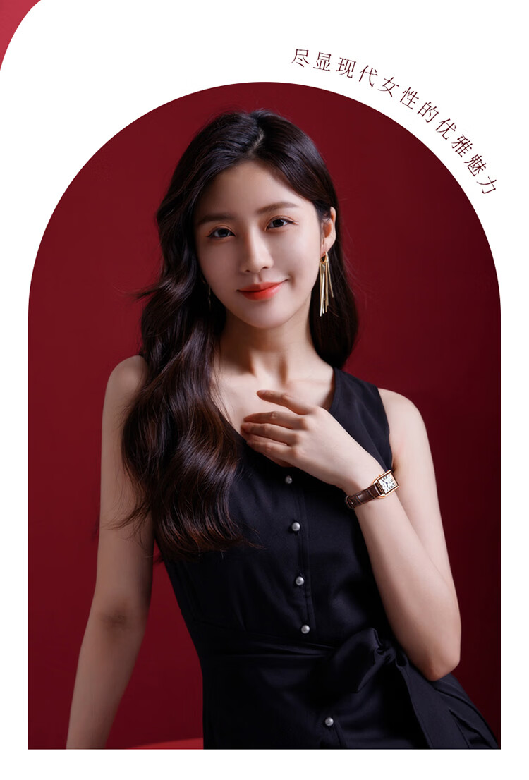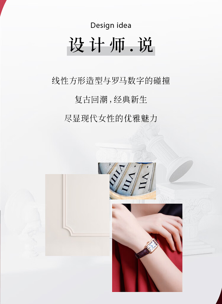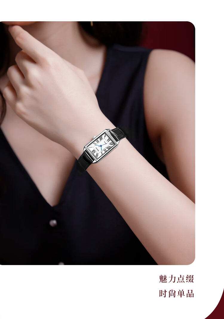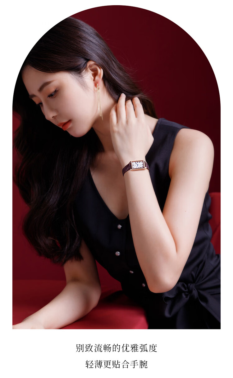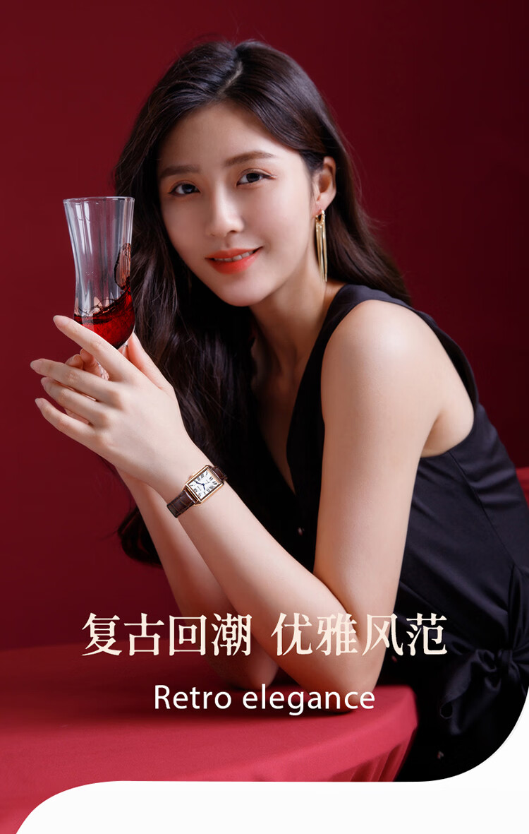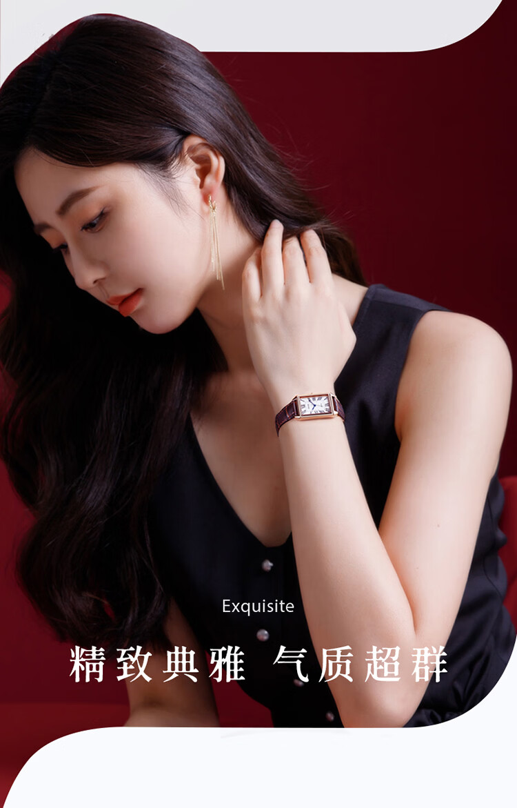 依波(EBOHR)大师系列 女士石英表 复古优雅方盘皮带防水手表送女友礼物