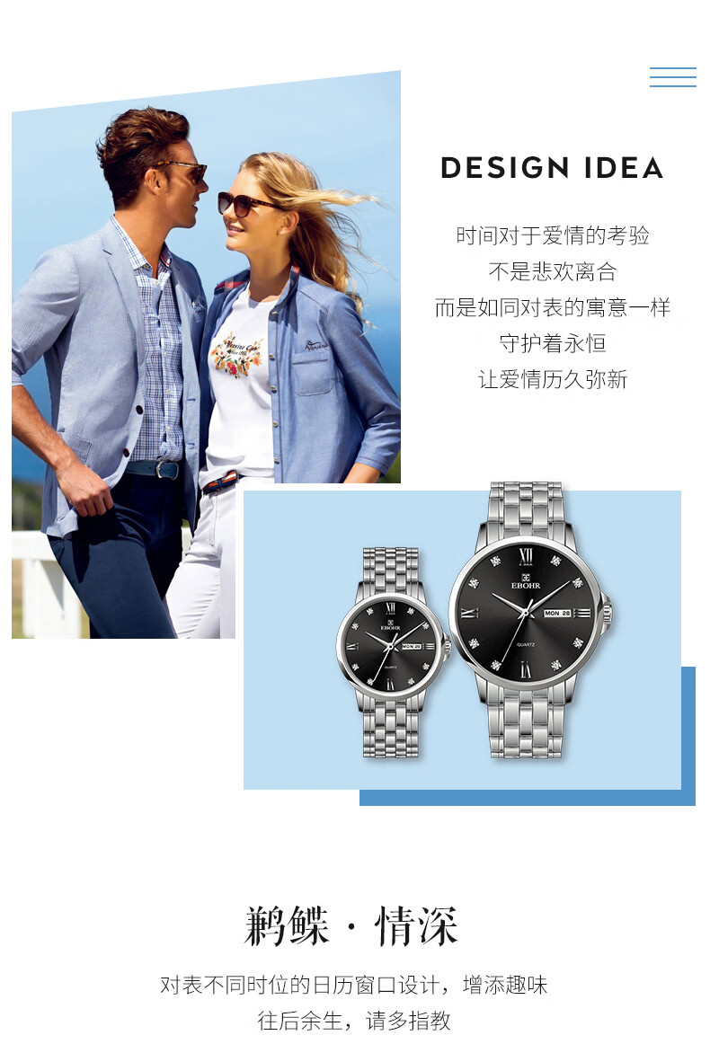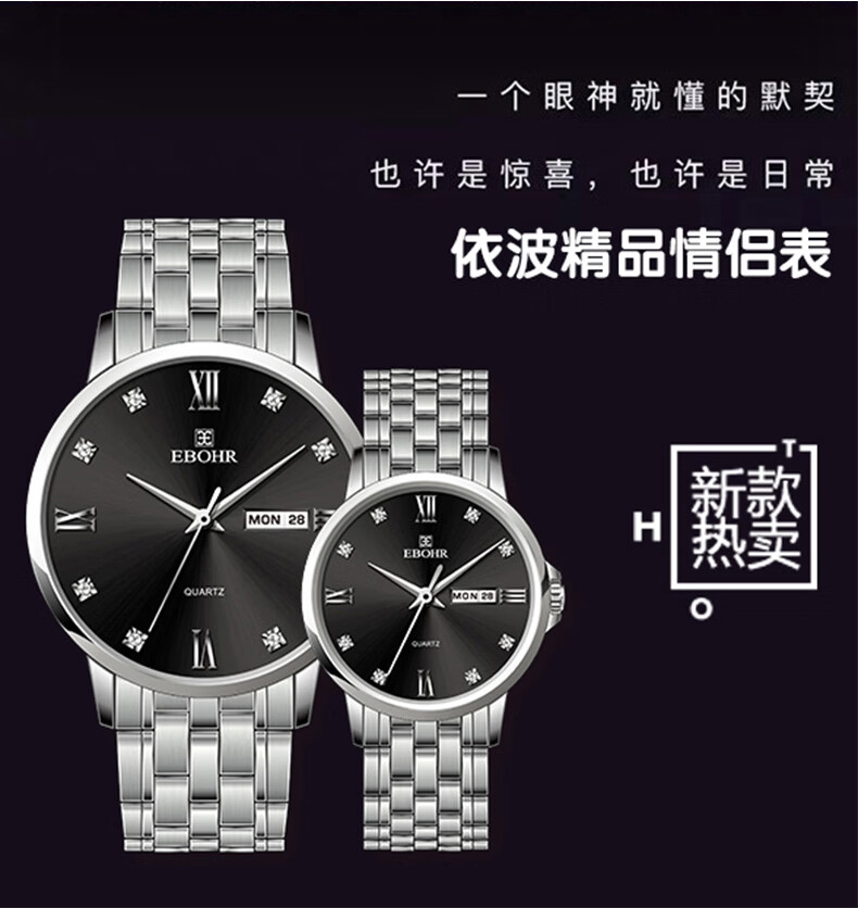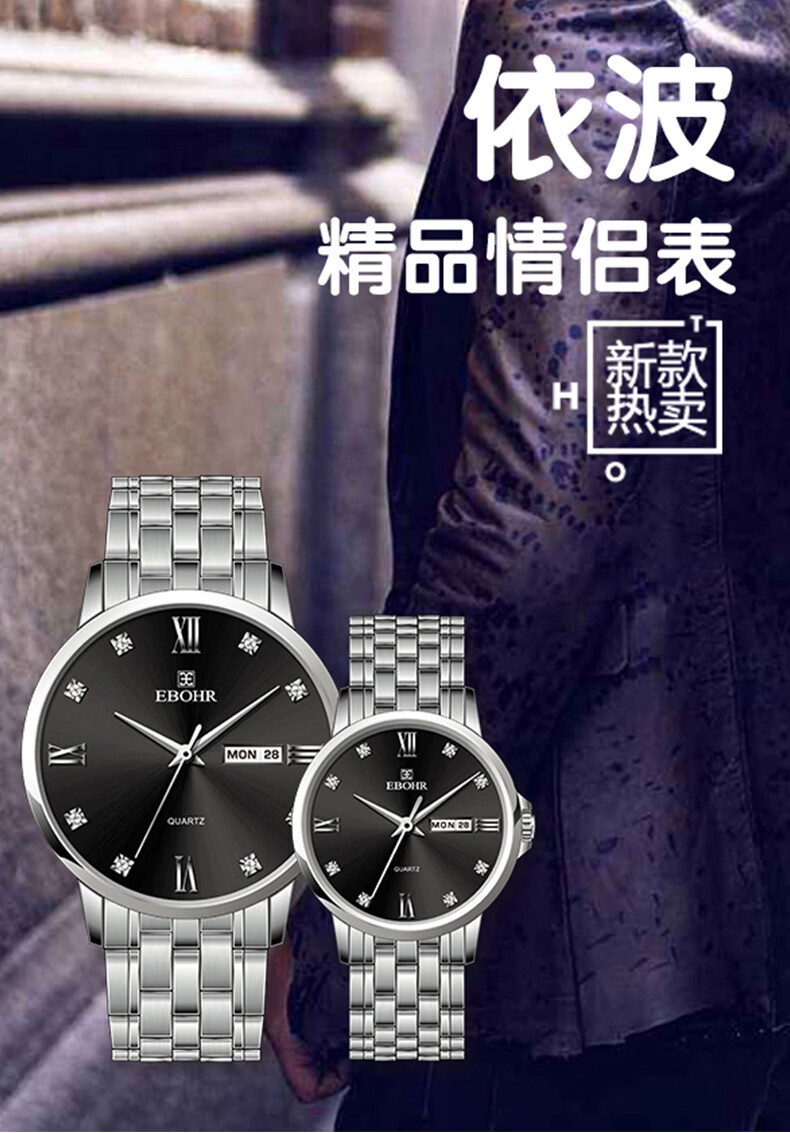 依波EBOHR石英表情侣款男表7037