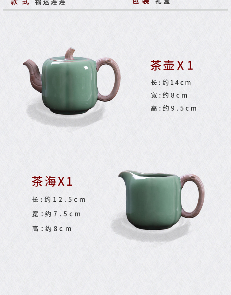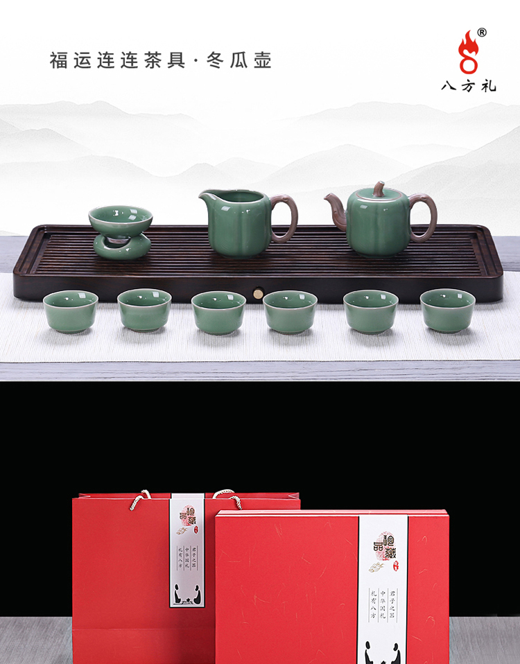 八方礼 福运连连汝窑茶具套装陶瓷商务套装送礼