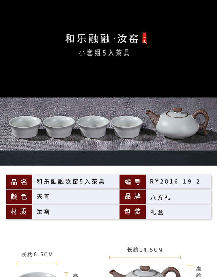 八方礼 汝窑和乐融融5入茶具便捷式旅行茶具
