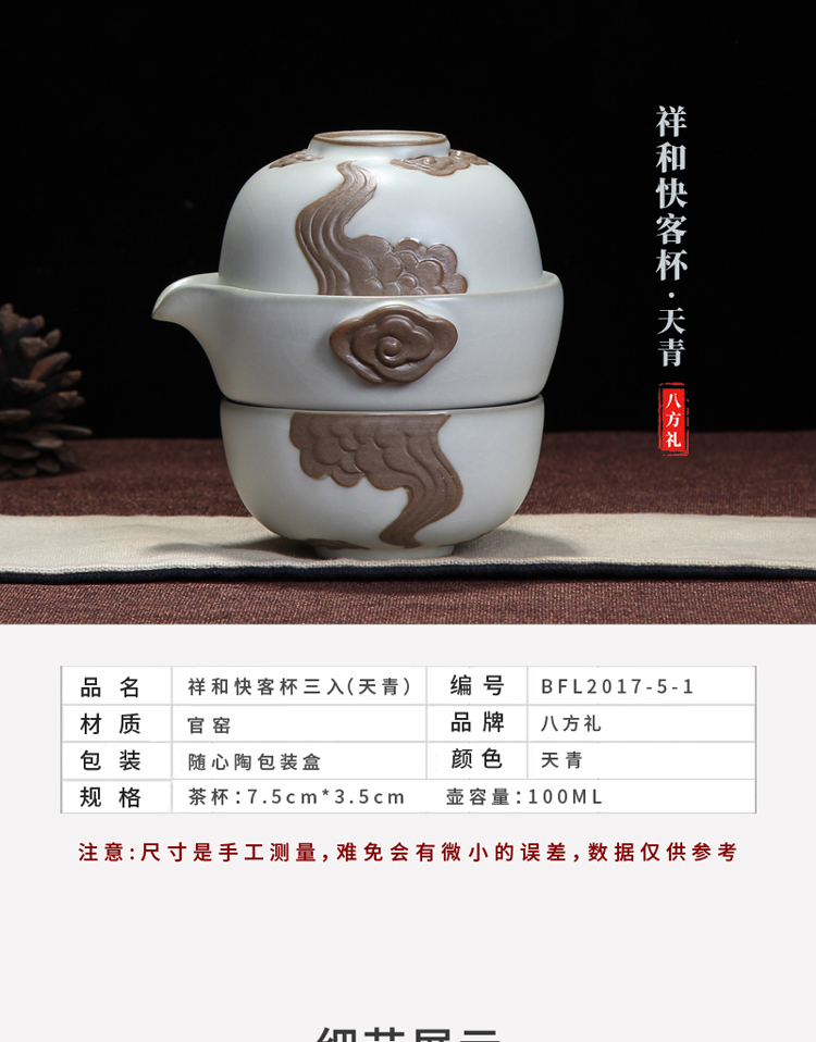 八方礼 福运连连汝窑茶具套装陶瓷商务套装送礼