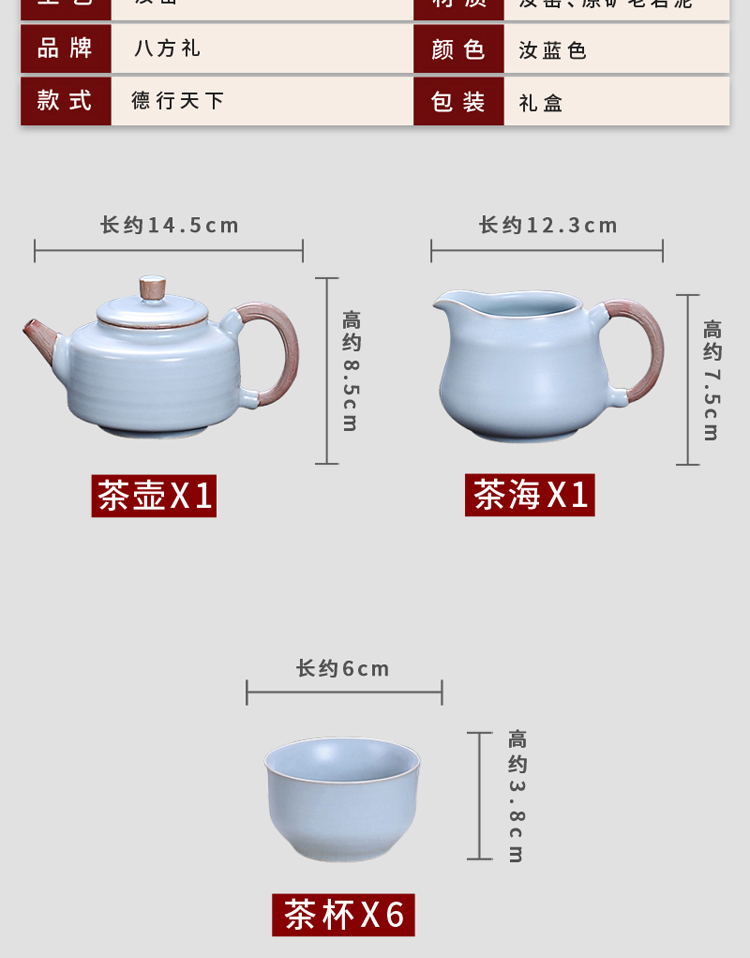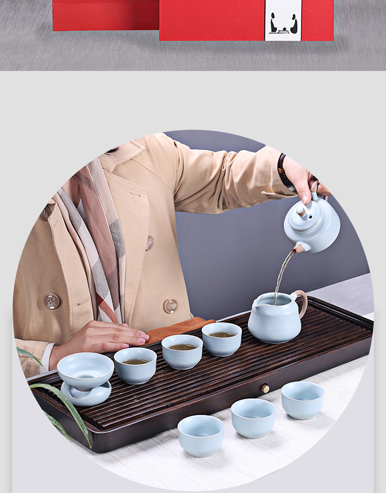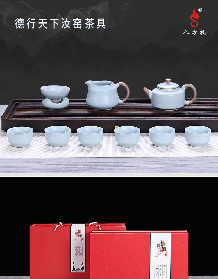 八方礼 福运连连汝窑茶具套装陶瓷商务套装送礼