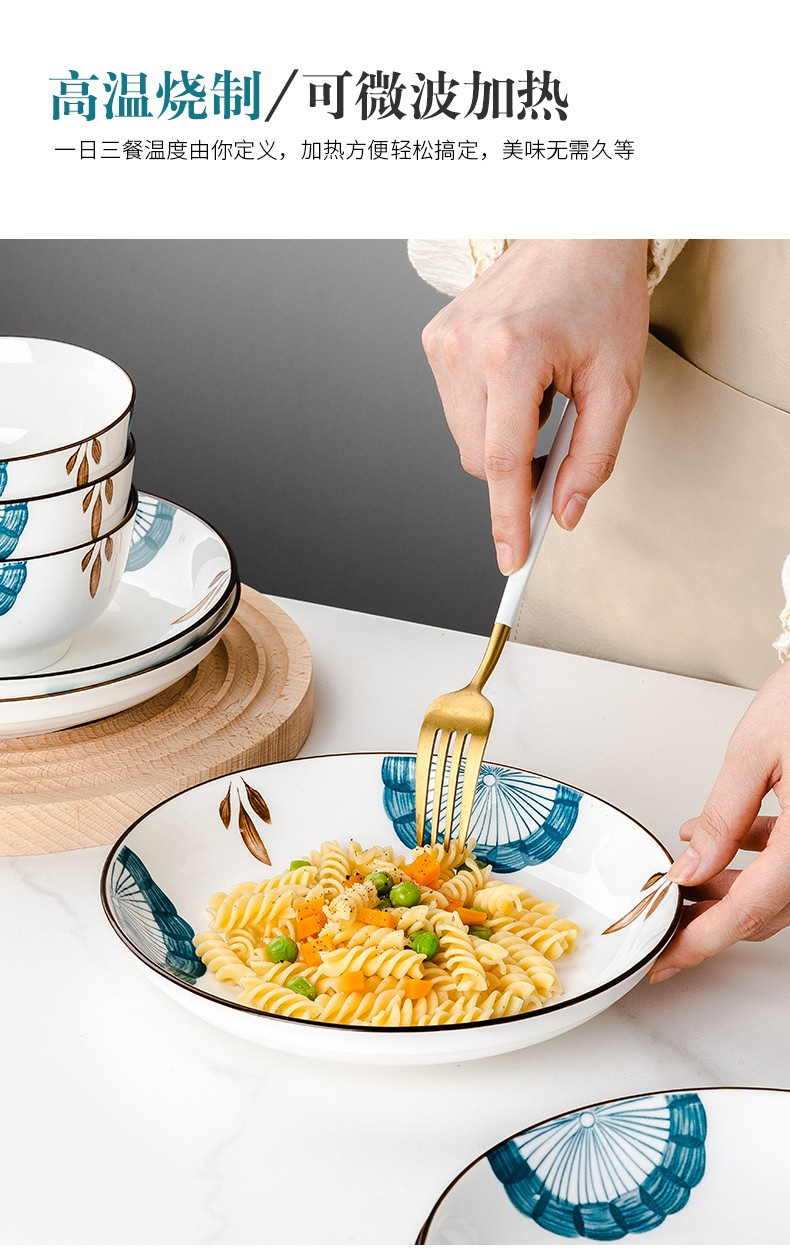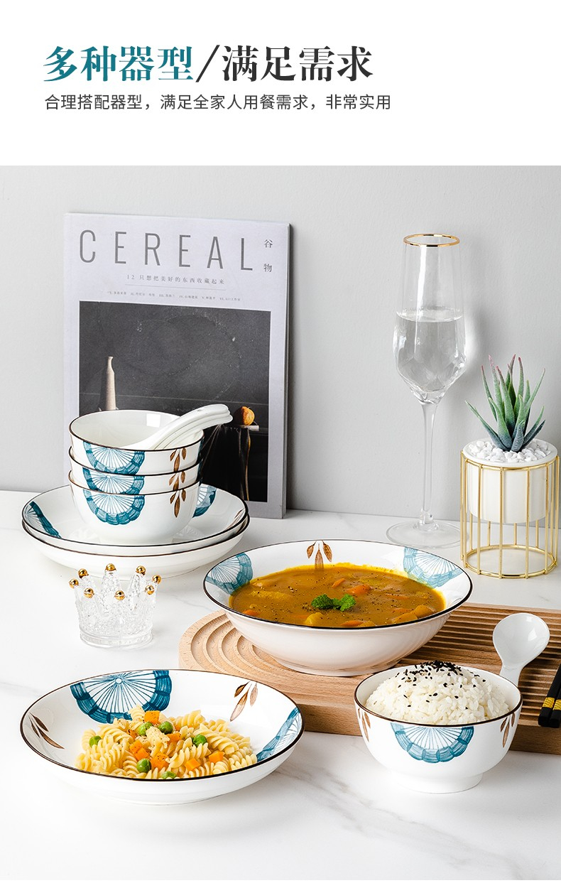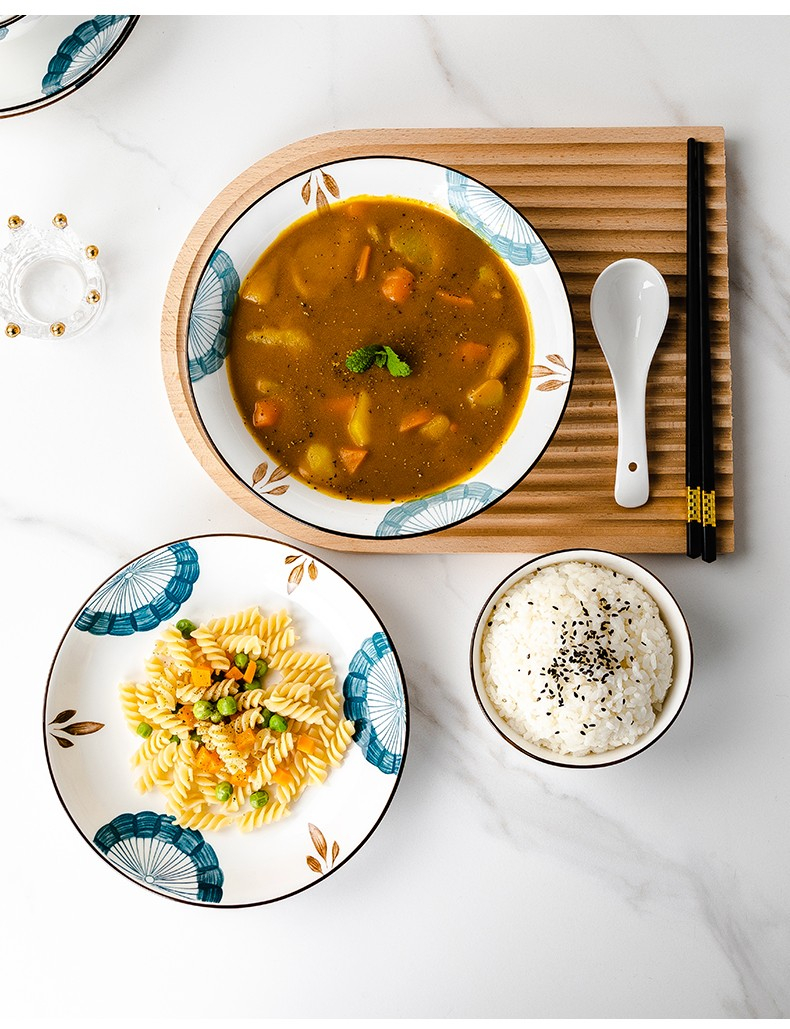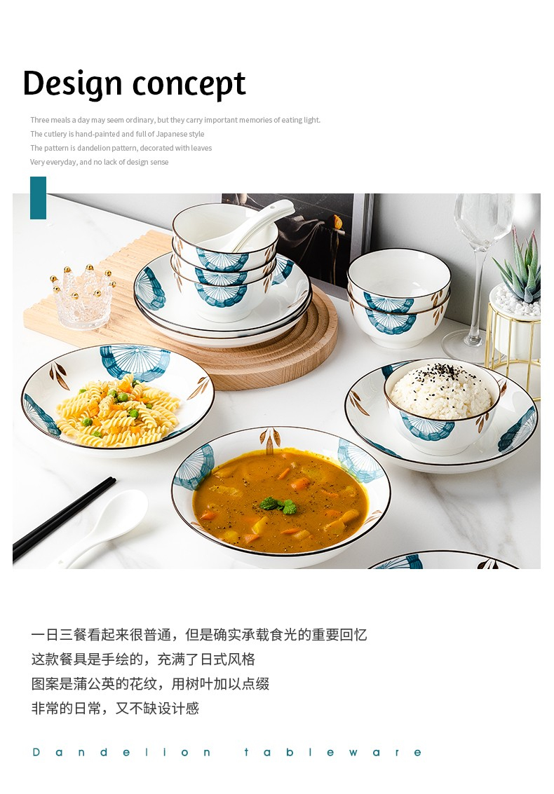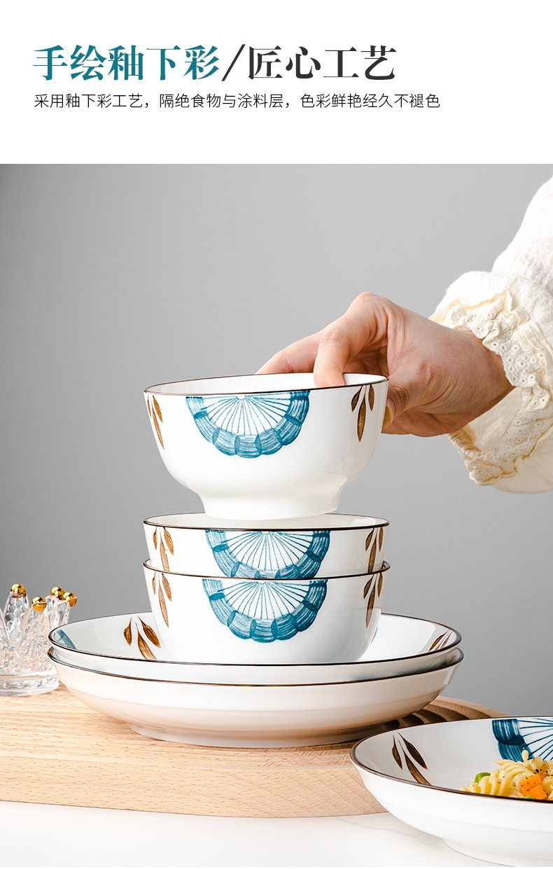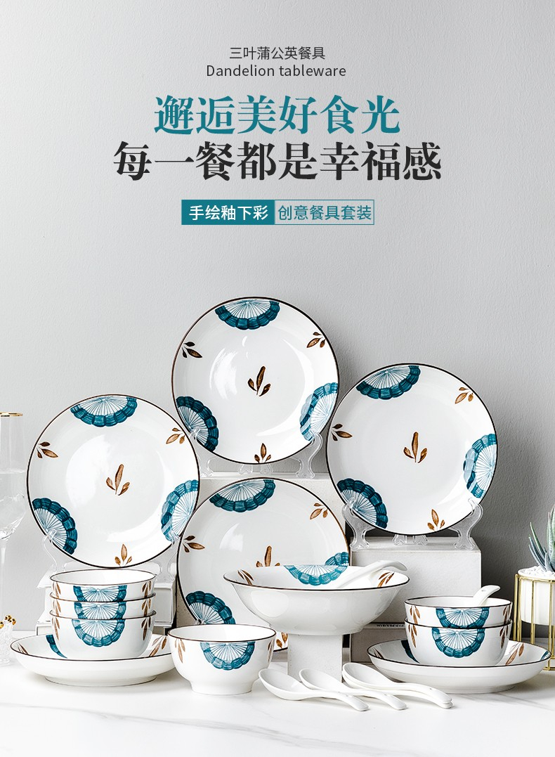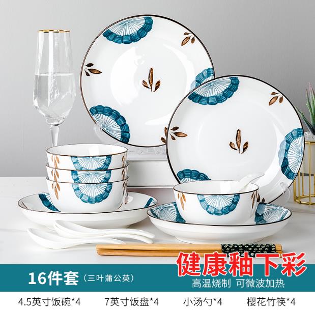 尚行知是山茶花餐具套装网红陶瓷家用碗盘16件套