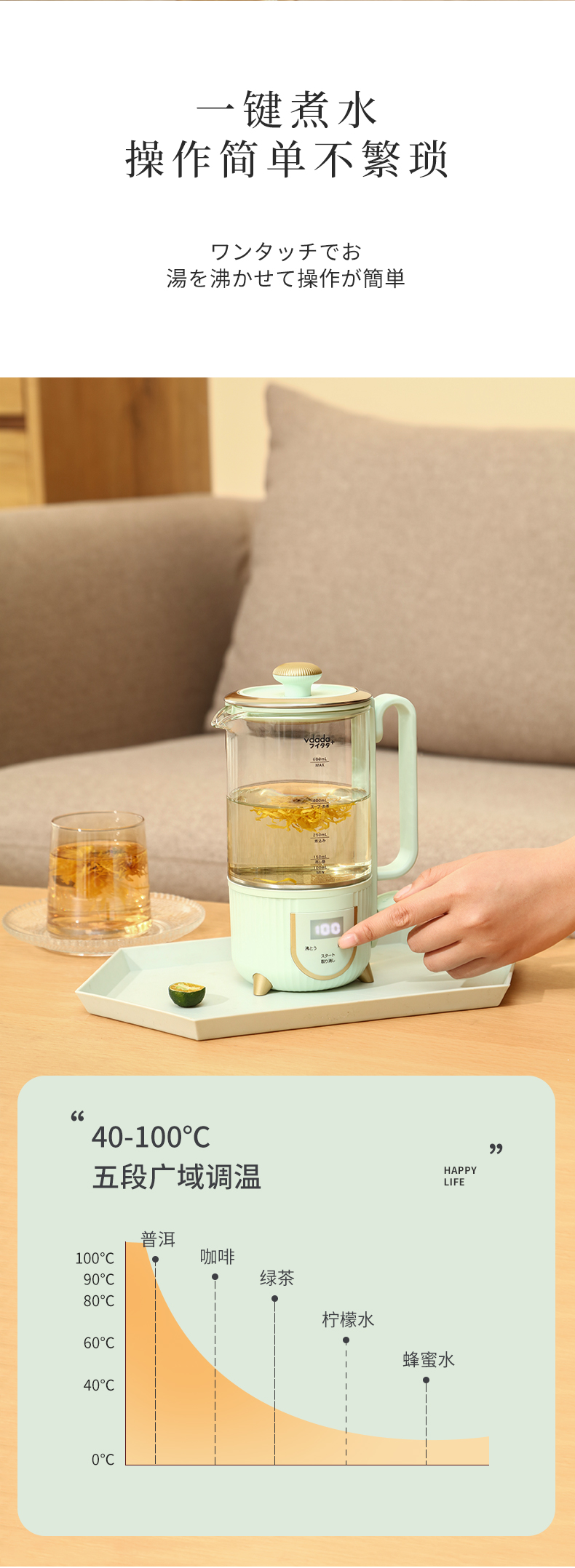 日本SOIKOI 玻璃电热水壶 JL-SH101