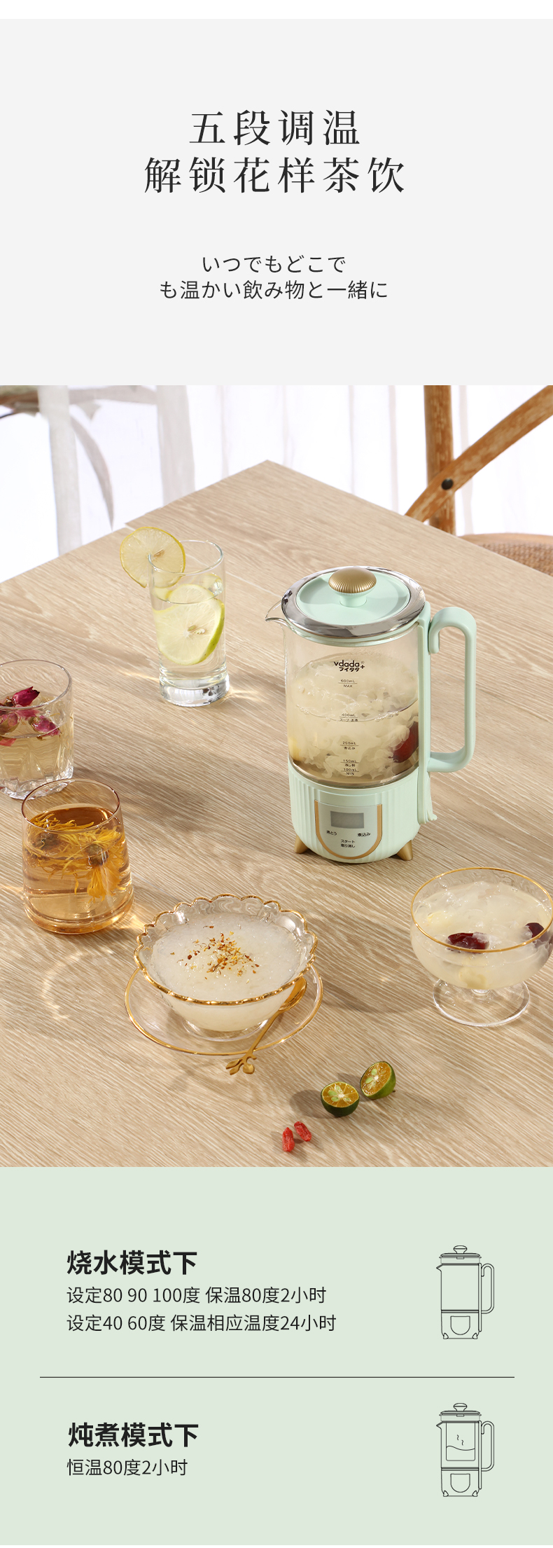 日本VDADA电热水壶家用复古304不锈钢煮水泡茶专用自动断电烧水壶