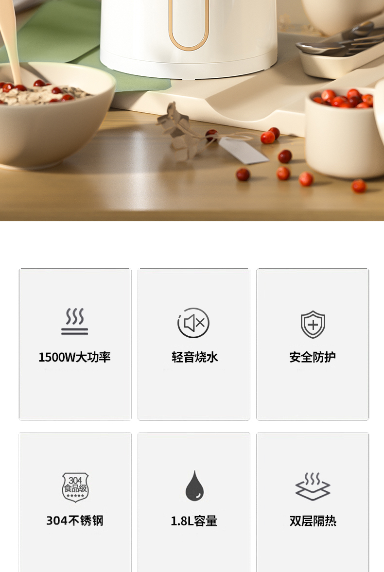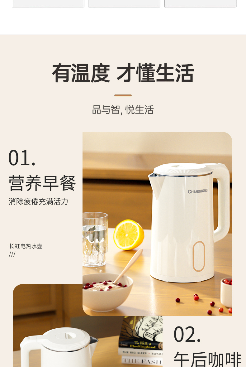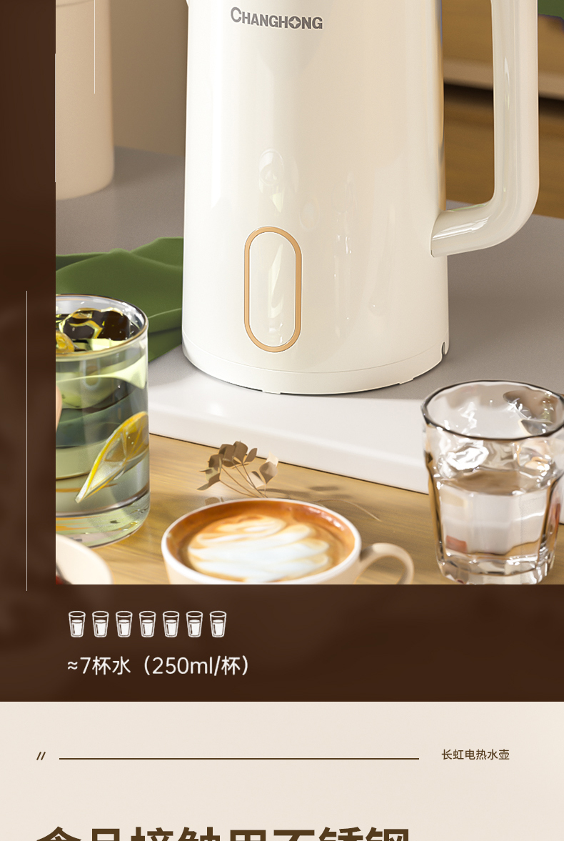 长虹方灯F8不保温款/F9保温款 2.2升装电热水壶-德诚