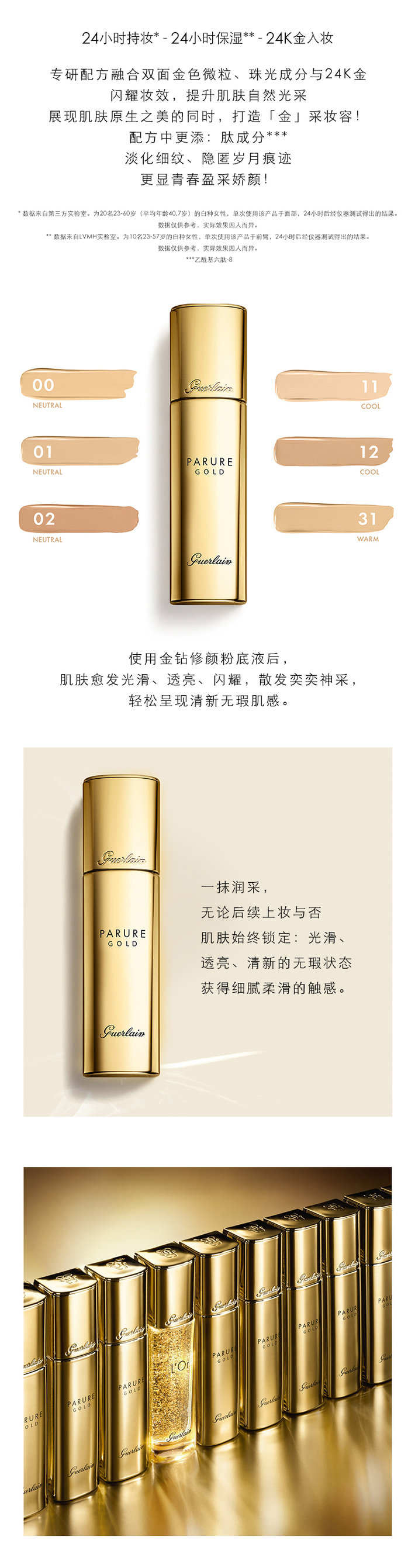 法国娇兰Guerlain金钻修颜粉底液 00号色 30ML 新版鎏金瓶