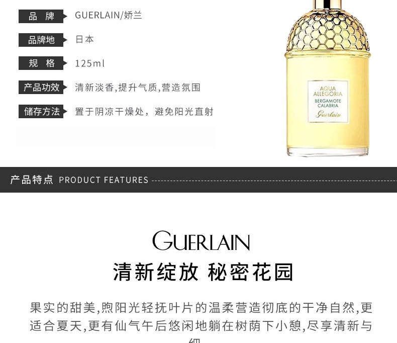 Guerlain/娇兰香水花草水语娇嫩玫瑰柑橘罗勒圆舞榴光淡香75ml多颜色选择