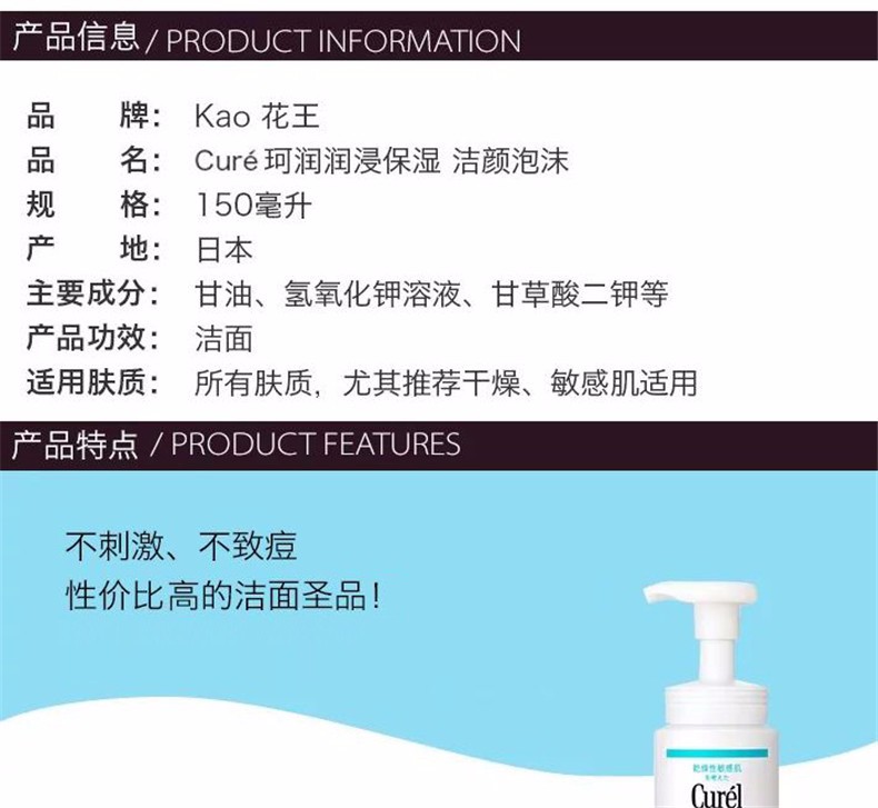 保持肌肤光滑的同时,有效洗净污垢和多余油脂;奶油状的绵密泡沫,洁面时有助于减少肌肤的负担,使用后带来润泽、舒适的感受