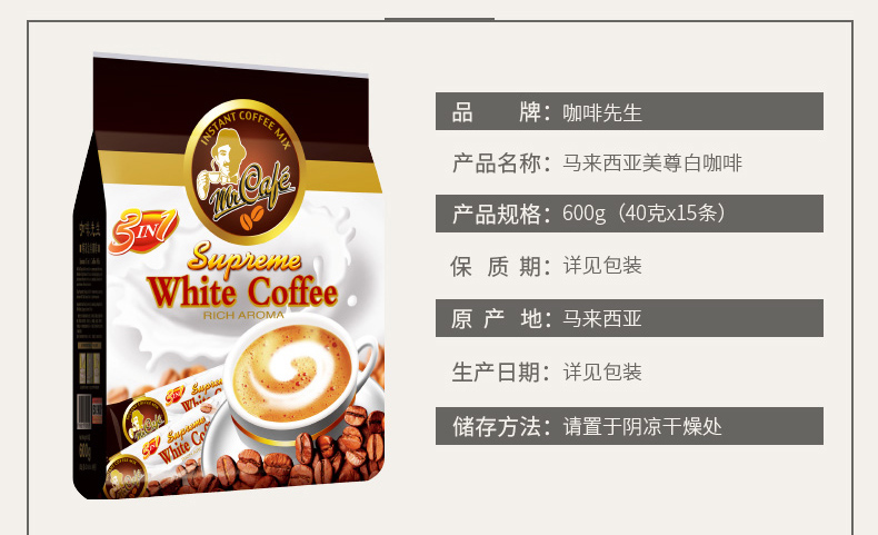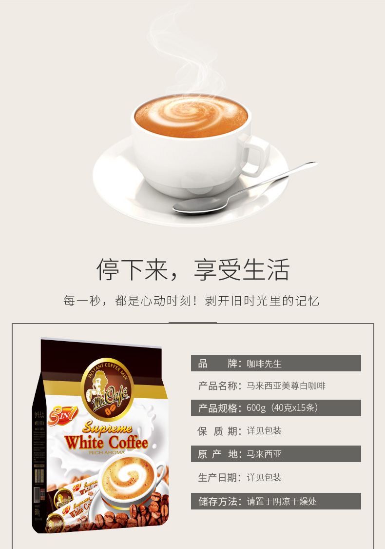 马来西亚进口MR CAFE咖啡先生®美尊白咖啡速溶三合一提神冲调即溶咖啡粉280g盒装
