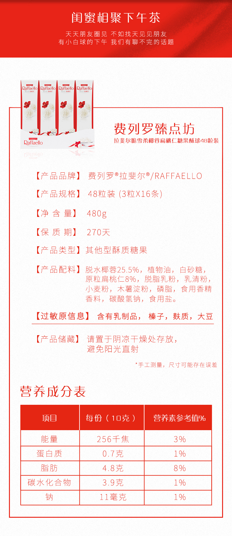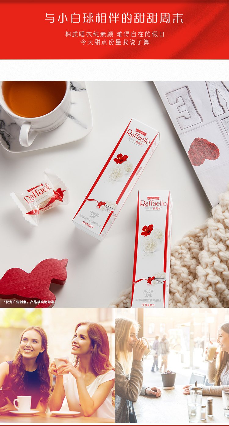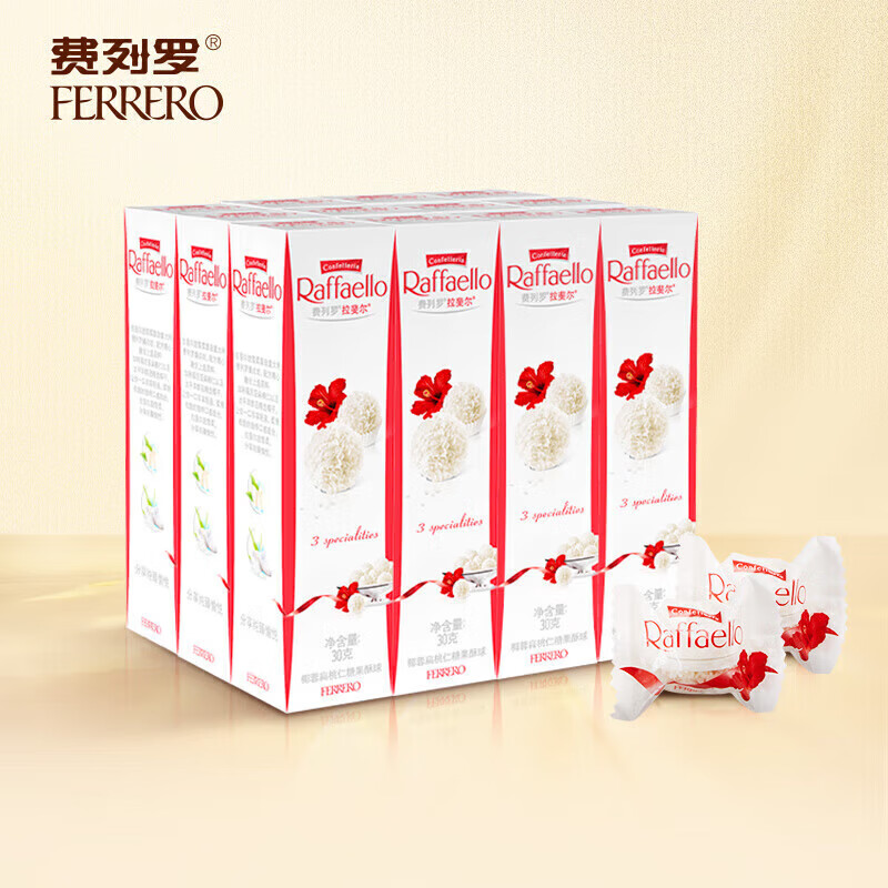 费列罗(FERRERO)拉斐尔椰蓉扁桃仁糖果酥球 喜糖伴手礼女神节礼物 15粒 48粒礼盒装480g