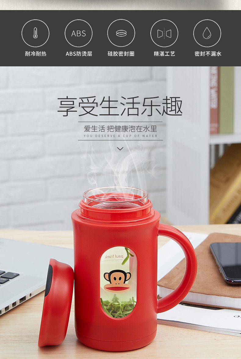 艾姆德 德隆双层茶水分离杯300+150ml商务办公泡茶杯子