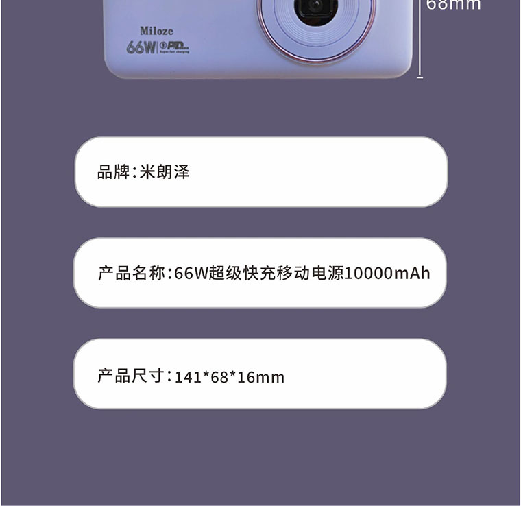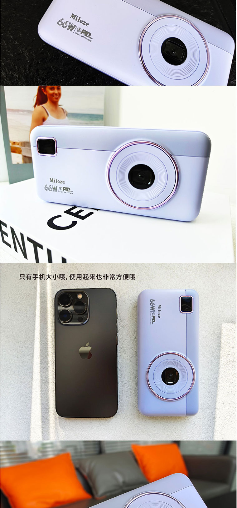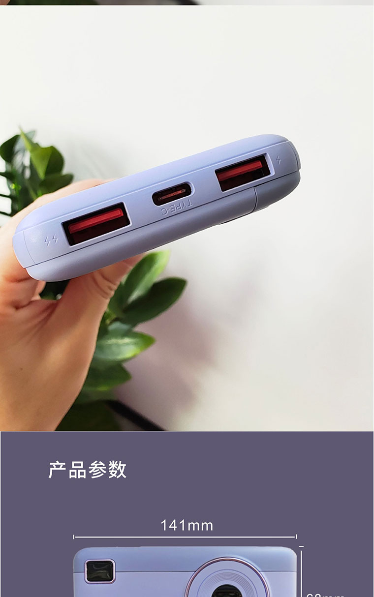 VKE迷你自带线充电宝20000毫安小巧便携大容量适用所有手机闪充苹果安卓手机移动电源